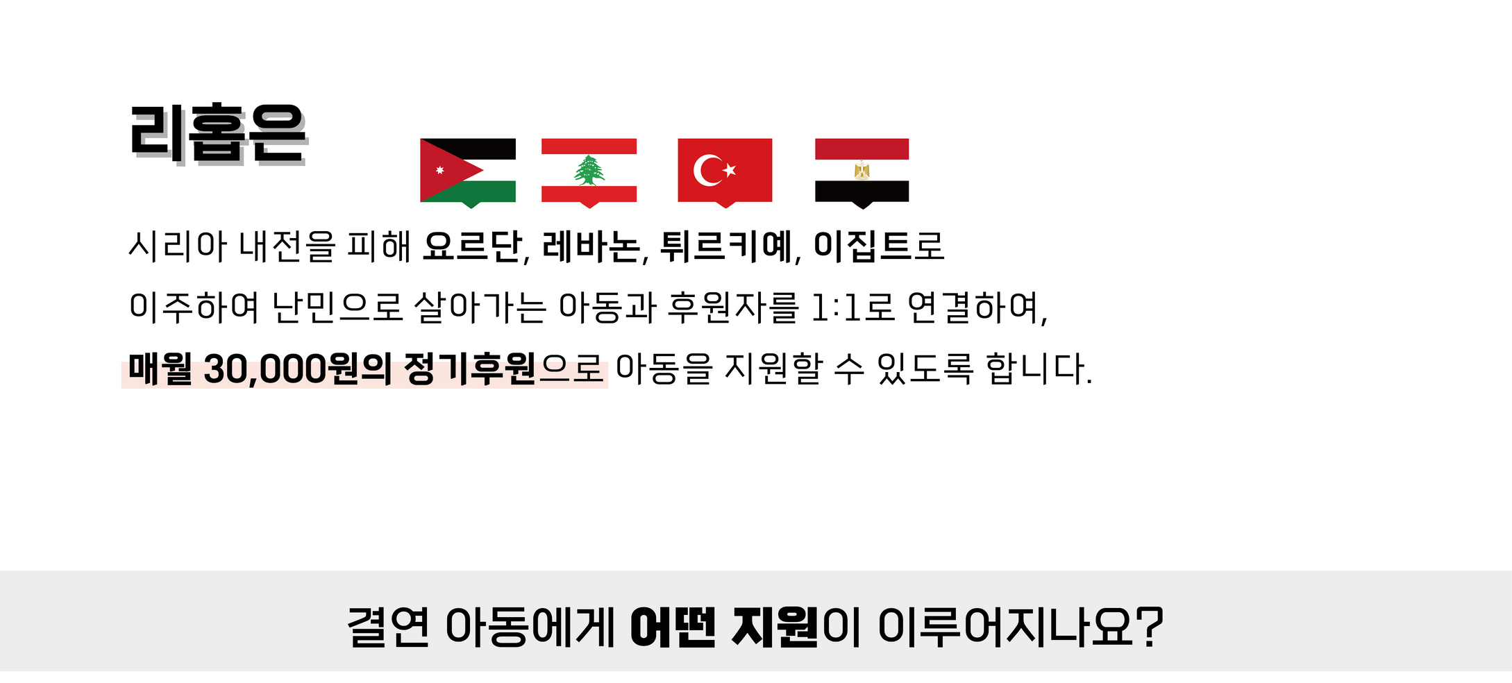 후원자님의 후원이 중동 취약계층 및 난민 아동의 삶에 꿈과 소망이 됩니다